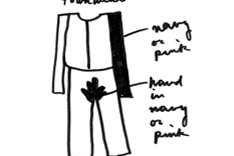 Destacan pantalones de traje con la silueta de una mano cosida sobre la entrepierna (se venderá a aproximadamente 260 euros), un jersey con ojales cortados alrededor de los pezones y un sujetador para usar por debajo, con una bombilla que funciona con baterías (casi 200 euros).